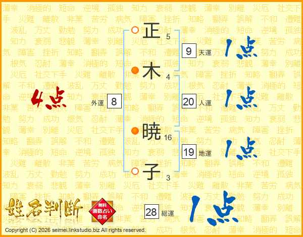 正(5画)木(4画) 暁(16画)子(3画)