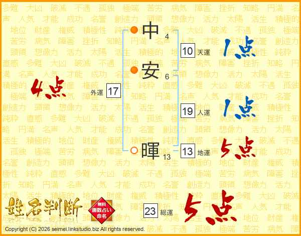 中安暉さんの人運は19画の1点!