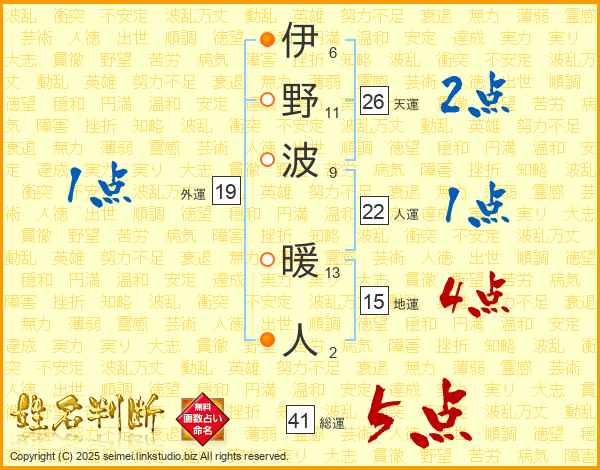 伊野波暖人さんの総運は41画の5点!