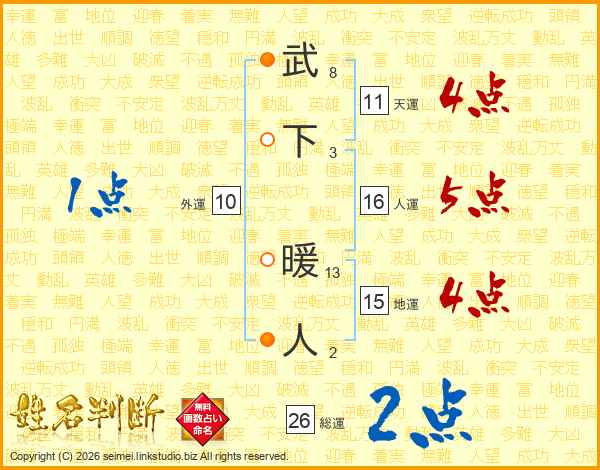 武下暖人さんの総運は26画の2点!