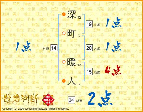 深町暖人さんの総運は34画の2点!