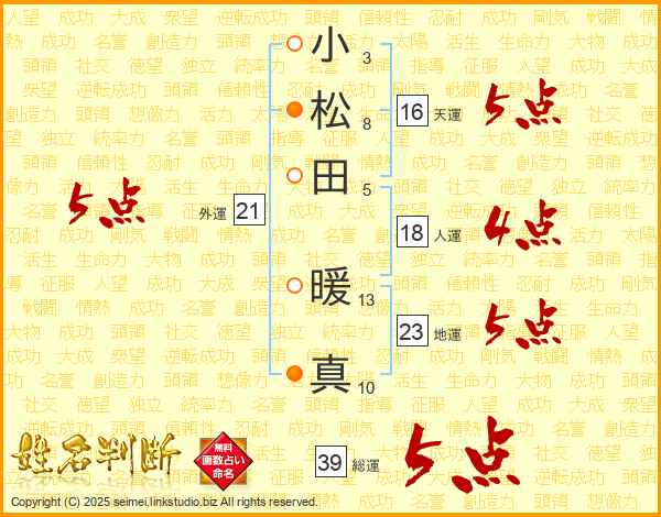 小(3画)松(8画)田(5画) 暖(13画)真(10画)