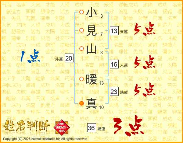 小見山暖真さんの天運は13画の5点!