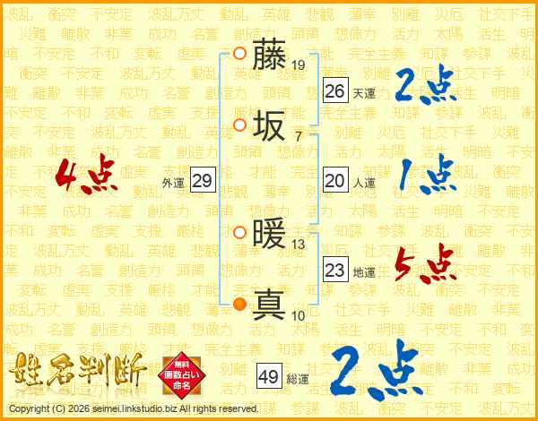 藤坂暖真さんの天運は26画の2点!