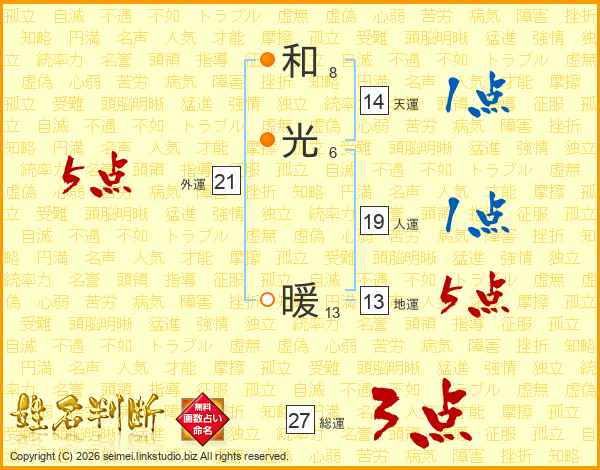和光暖さんの総運は27画の3点!