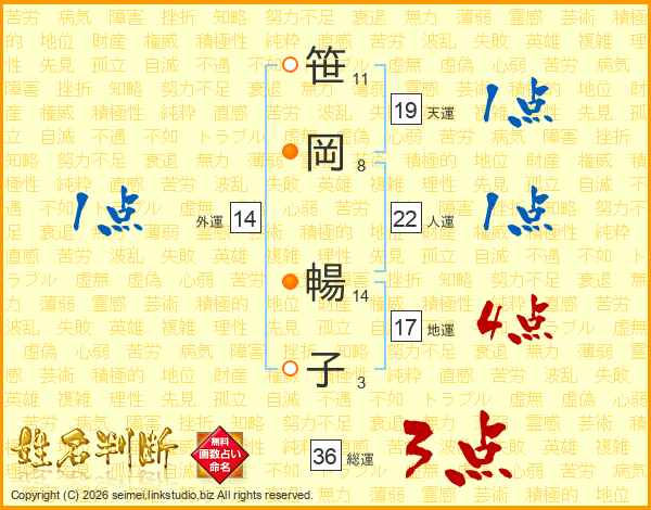 笹岡暢子さんの外運は14画の1点!