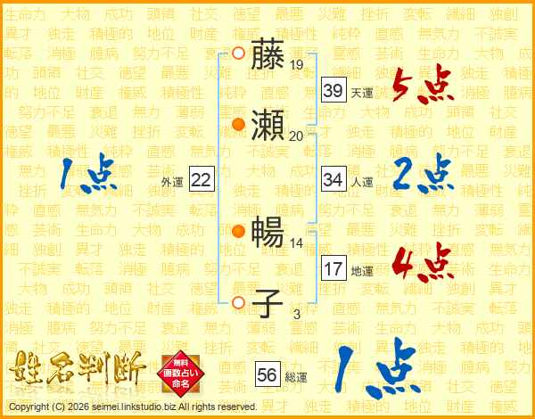 藤瀬暢子さんの総運は56画の1点!