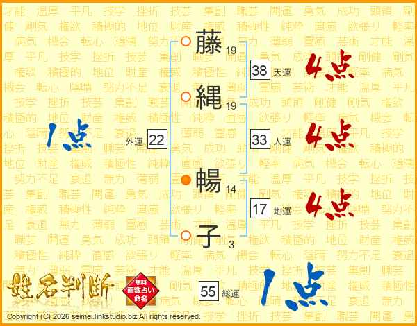 藤縄暢子さんの天運は38画の4点!