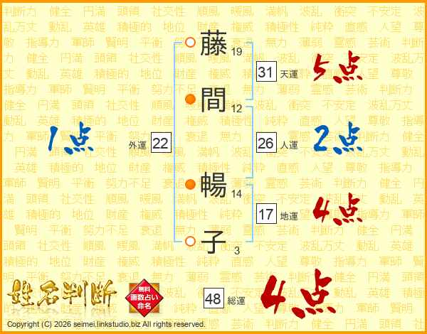 藤間暢子さんの総運は48画の4点!