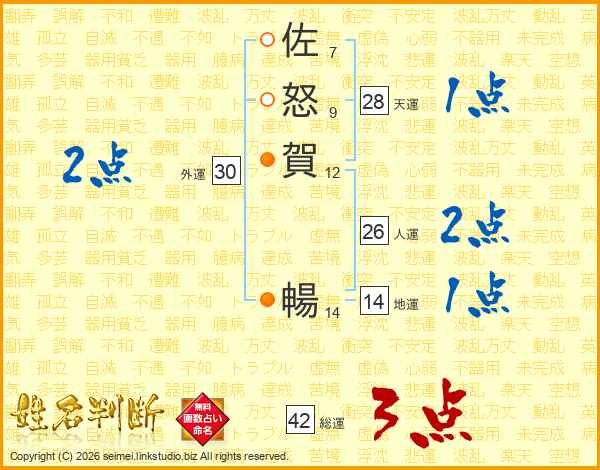 佐(7画)怒(9画)賀(12画) 暢(14画)