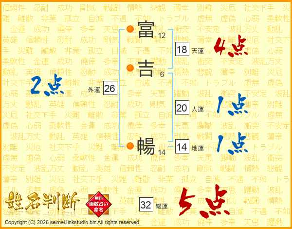 富吉暢さんの総運は32画の5点!