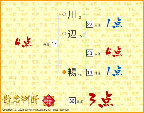 川辺暢さんの人運は33画の4点!