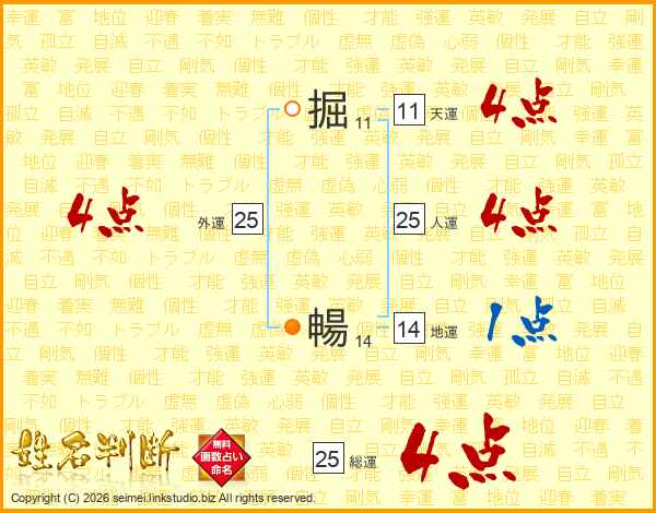 掘暢さんの天運は11画の4点!