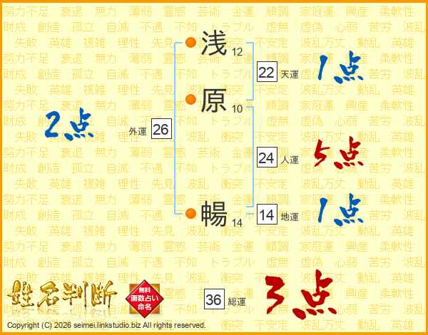 浅原暢さんの天運は22画の1点!
