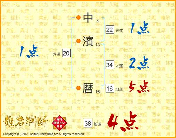 中濱暦さんの総運は38画の4点!