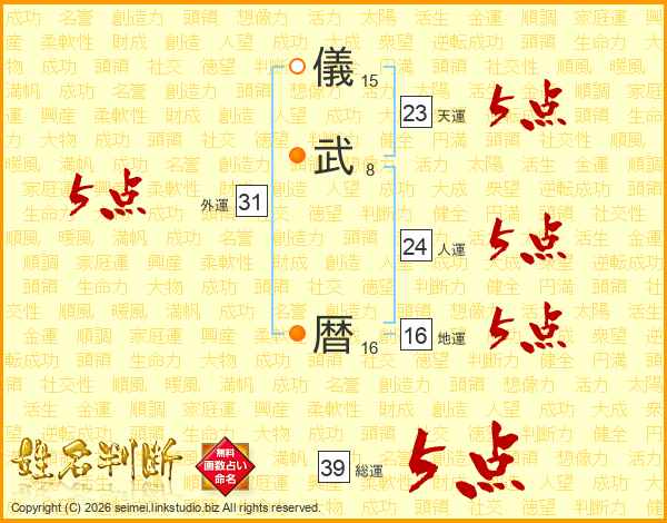 儀武暦さんの総運は39画の5点!