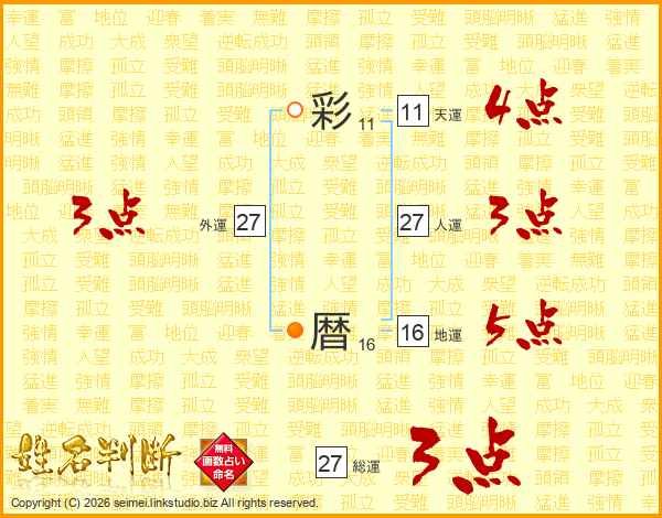 彩暦さんの総運は27画の3点!