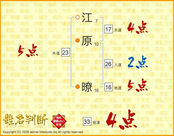 江原暸さんの総運は33画の4点!