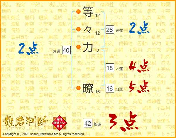 等々力暸さんの天運は26画の2点!