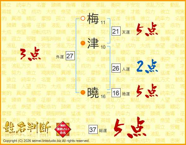 梅津曉さんの総運は37画の5点!