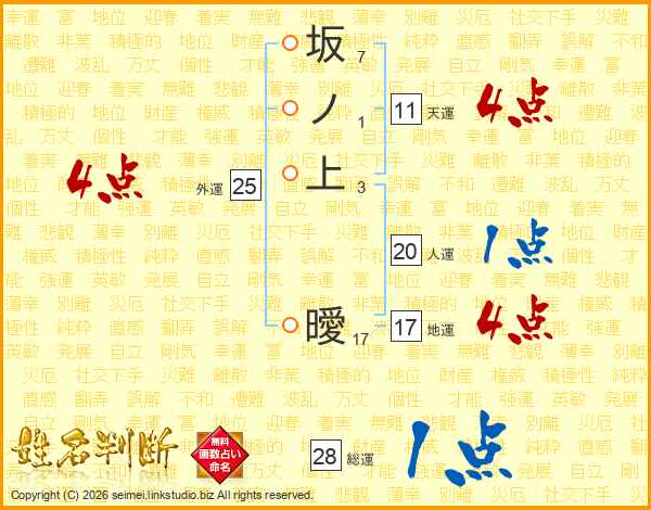 坂(7画)ノ(1画)上(3画) 曖(17画)