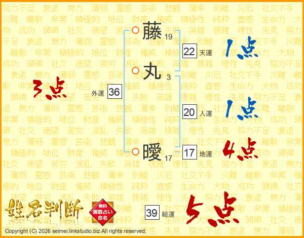 藤丸曖さんの総運は39画の5点!