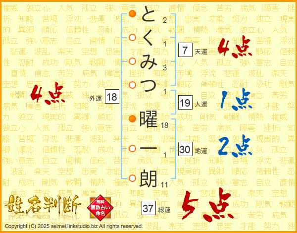 と(2画)く(1画)み(3画)つ(1画) 曜(18画)一(1画)朗(11画)