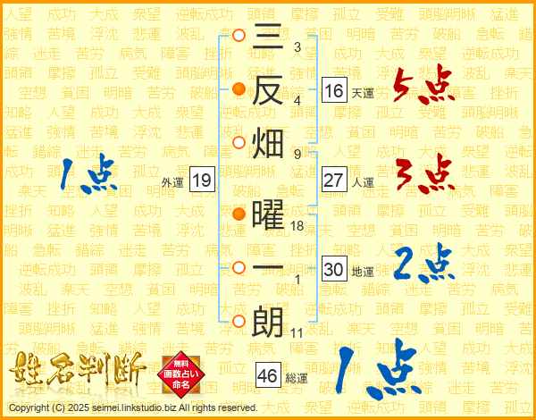 三反畑曜一朗さんの総運は46画の1点!