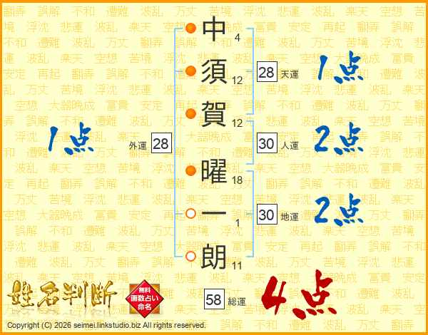 中須賀曜一朗さんの総運は58画の4点!