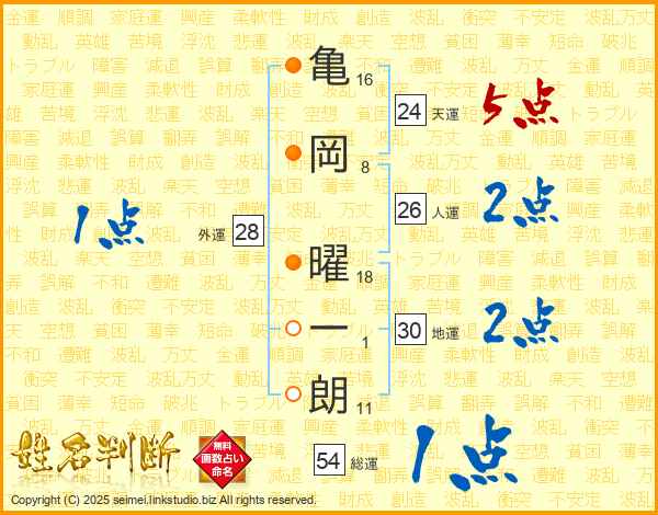 亀岡曜一朗さんの総運は54画の1点!