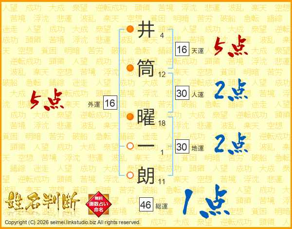 井筒曜一朗さんの総運は46画の1点!
