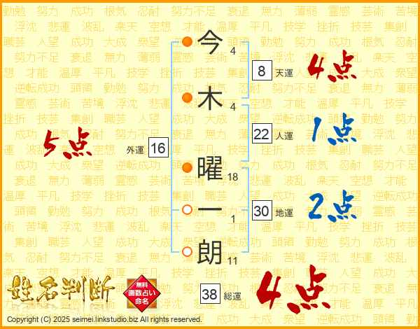今(4画)木(4画) 曜(18画)一(1画)朗(11画)