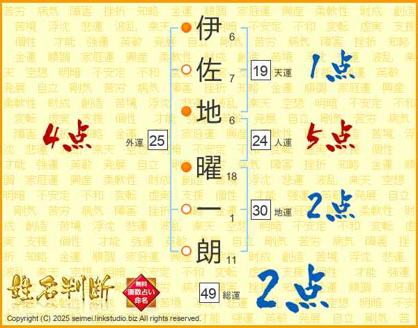 伊佐地曜一朗さんの総運は49画の2点!