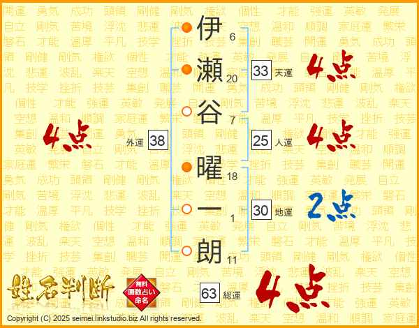 伊瀬谷曜一朗さんの総運は63画の4点!