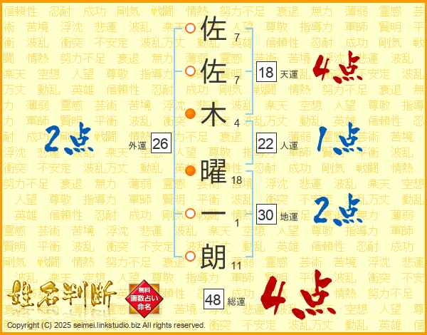 佐(7画)佐(7画)木(4画) 曜(18画)一(1画)朗(11画)