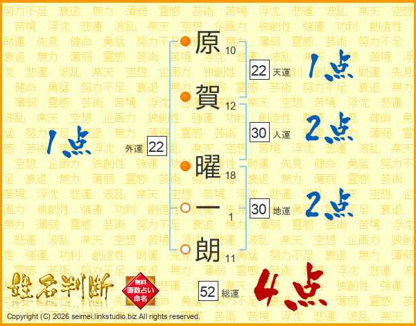 原賀曜一朗さんの総運は52画の4点!