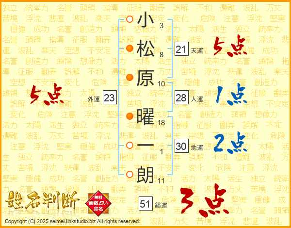 小松原曜一朗さんの天運は21画の5点!