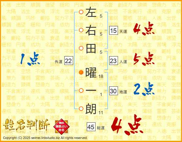 左(5画)右(5画)田(5画) 曜(18画)一(1画)朗(11画)