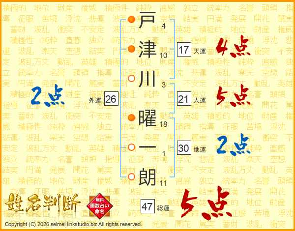 戸津川曜一朗さんの総運は47画の5点!