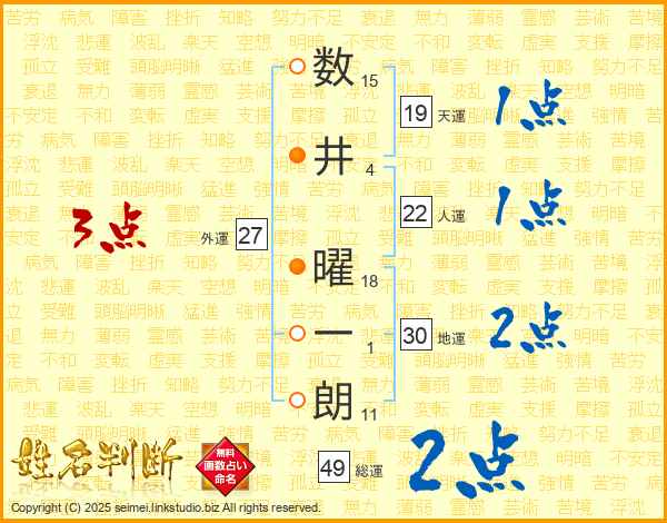数(15画)井(4画) 曜(18画)一(1画)朗(11画)