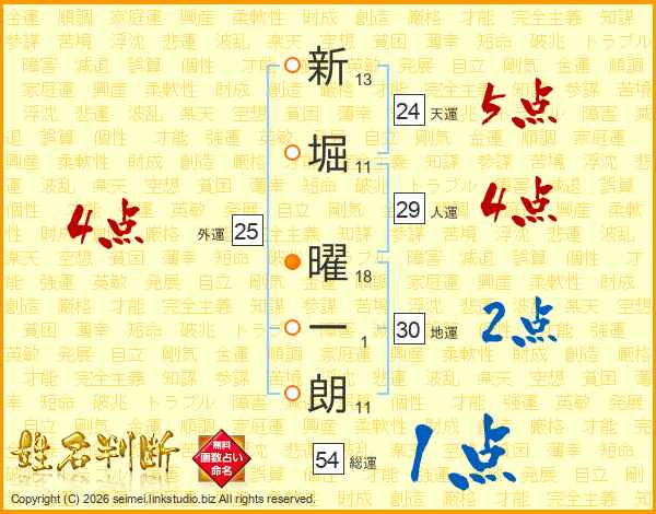 新堀曜一朗さんの総運は54画の1点!