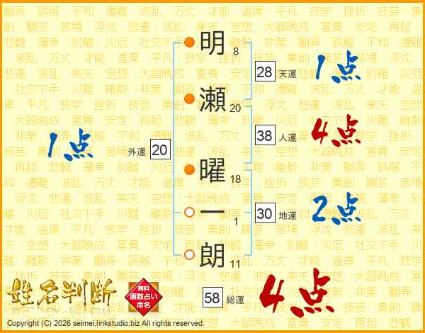 明瀬曜一朗さんの総運は58画の4点!
