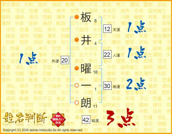 板(8画)井(4画) 曜(18画)一(1画)朗(11画)