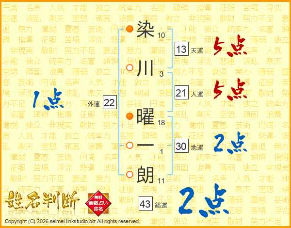 染(10画)川(3画) 曜(18画)一(1画)朗(11画)