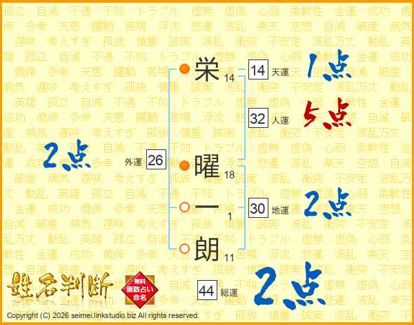 栄(14画) 曜(18画)一(1画)朗(11画)