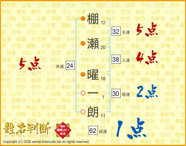 棚瀬曜一朗さんの天運は32画の5点!