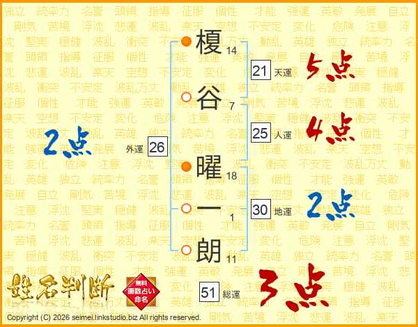 榎谷曜一朗さんの人運は25画の4点!