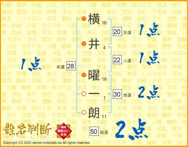 横井曜一朗さんの総運は50画の2点!