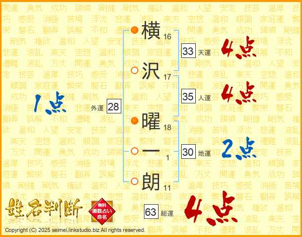 横沢曜一朗さんの総運は63画の4点!