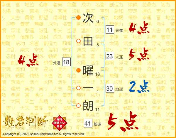 次田曜一朗さんの総運は41画の5点!